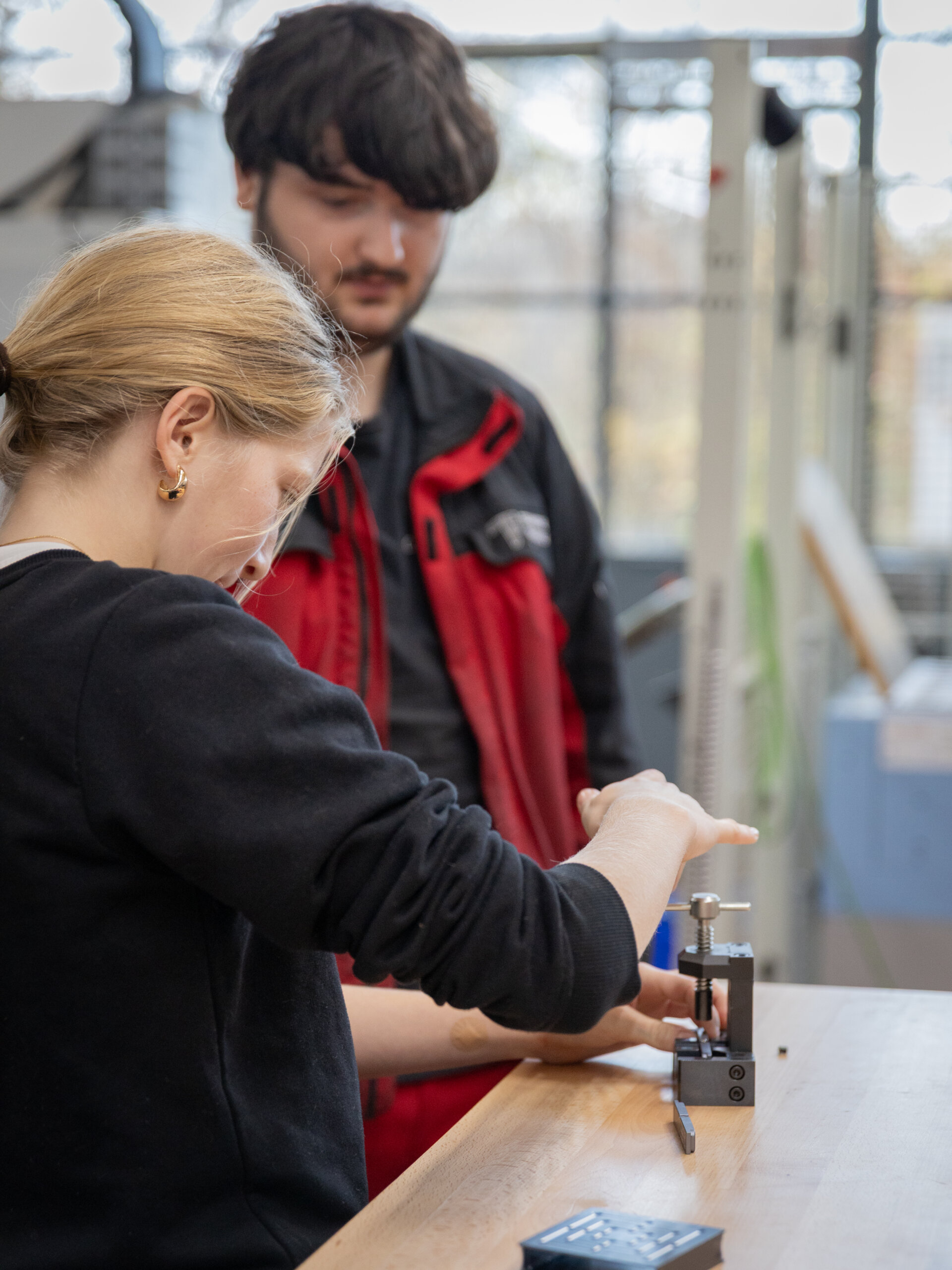 Tauche bei uns in die Welt der technischen und gewerblichen Berufe ein. In unseren Werkstätten und Labors lernst du mit modernen Arbeitsmethoden und Maschinen deinen Traumberuf kennen.